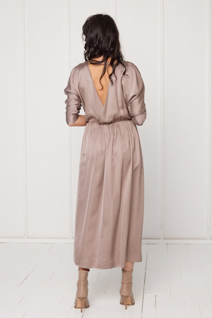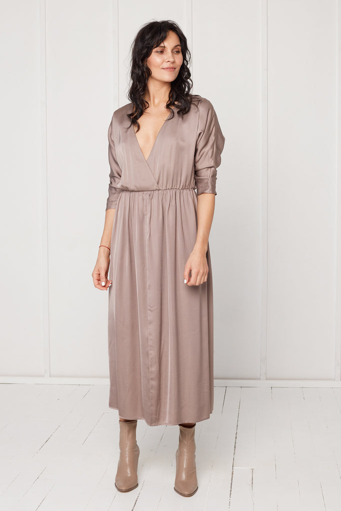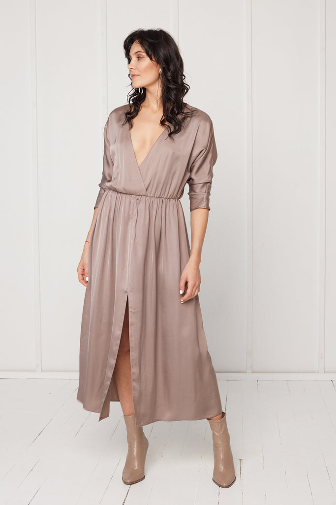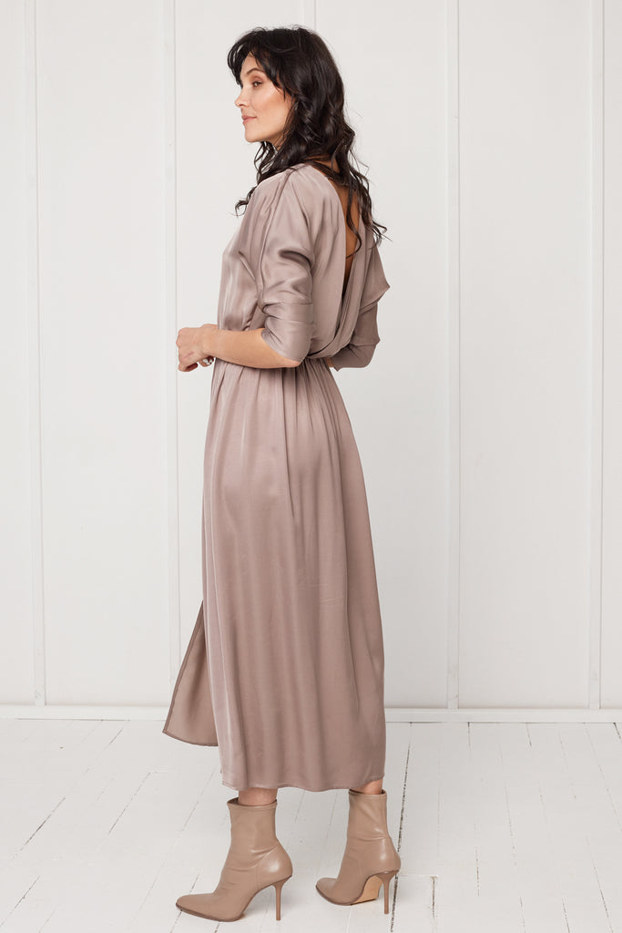 CIARA oversized kimono sleeve midi dress in taupe