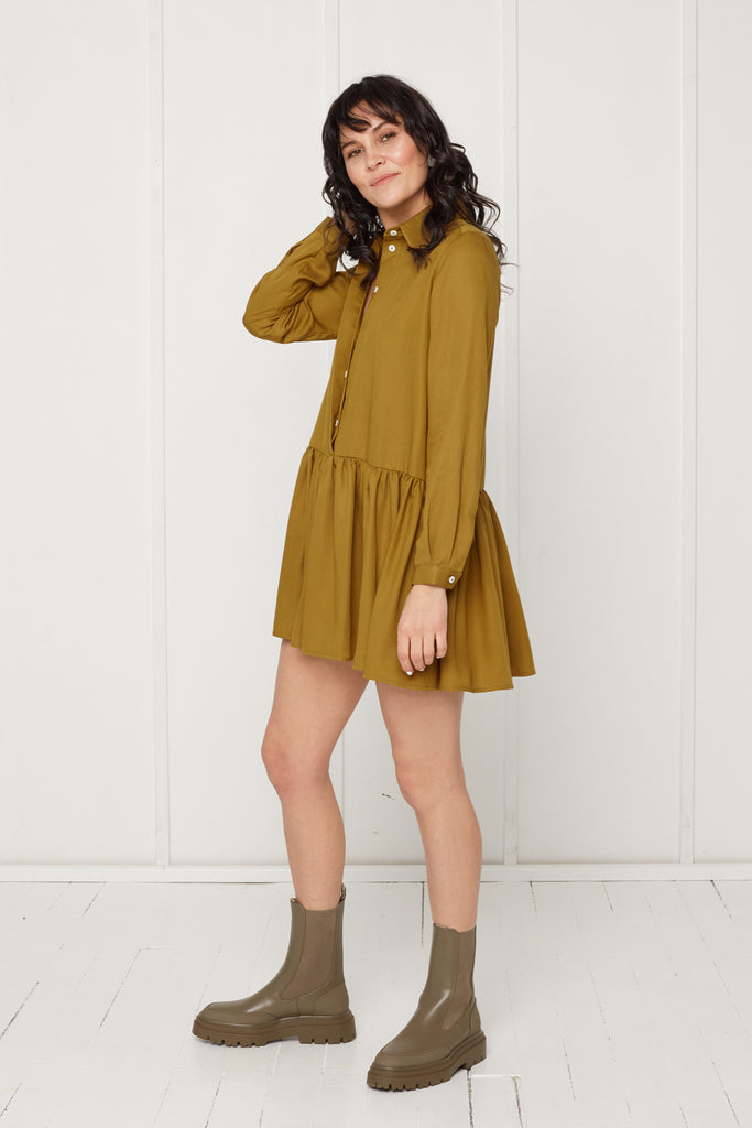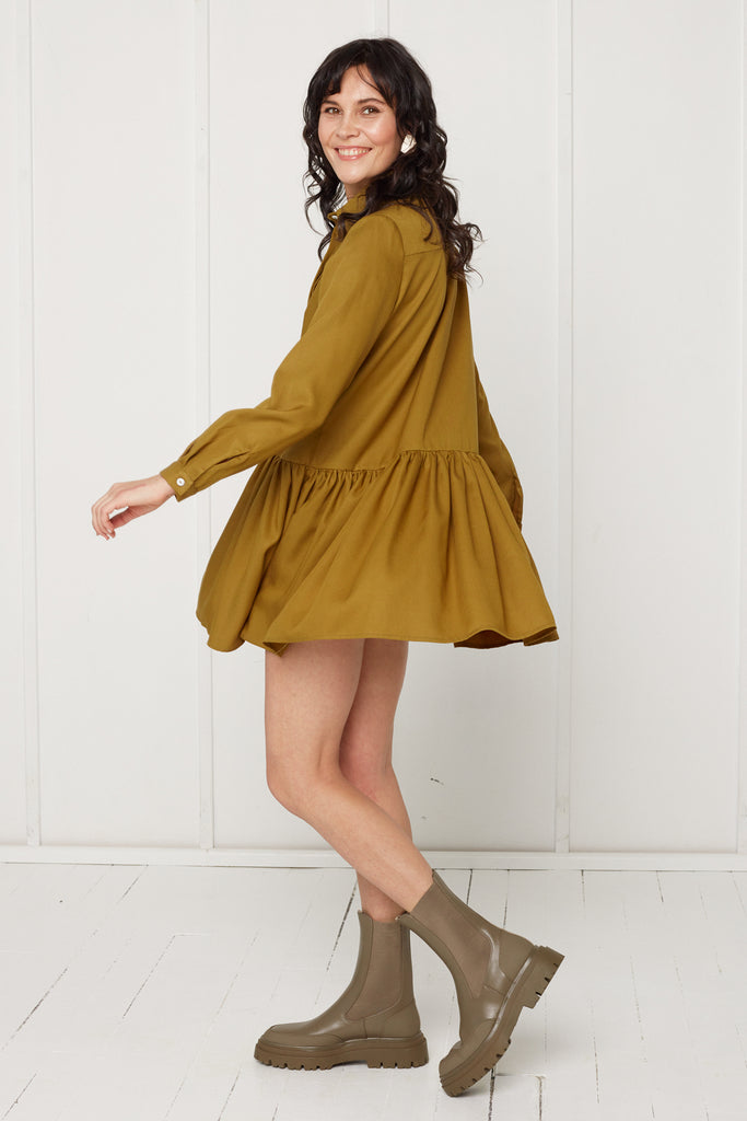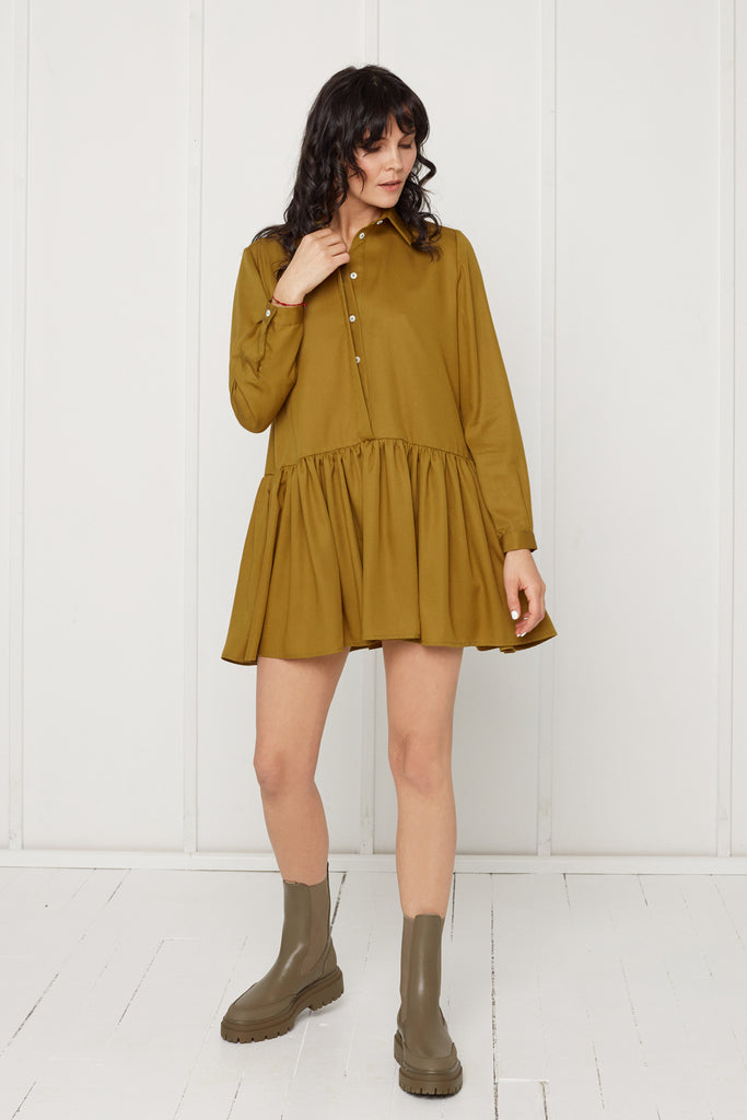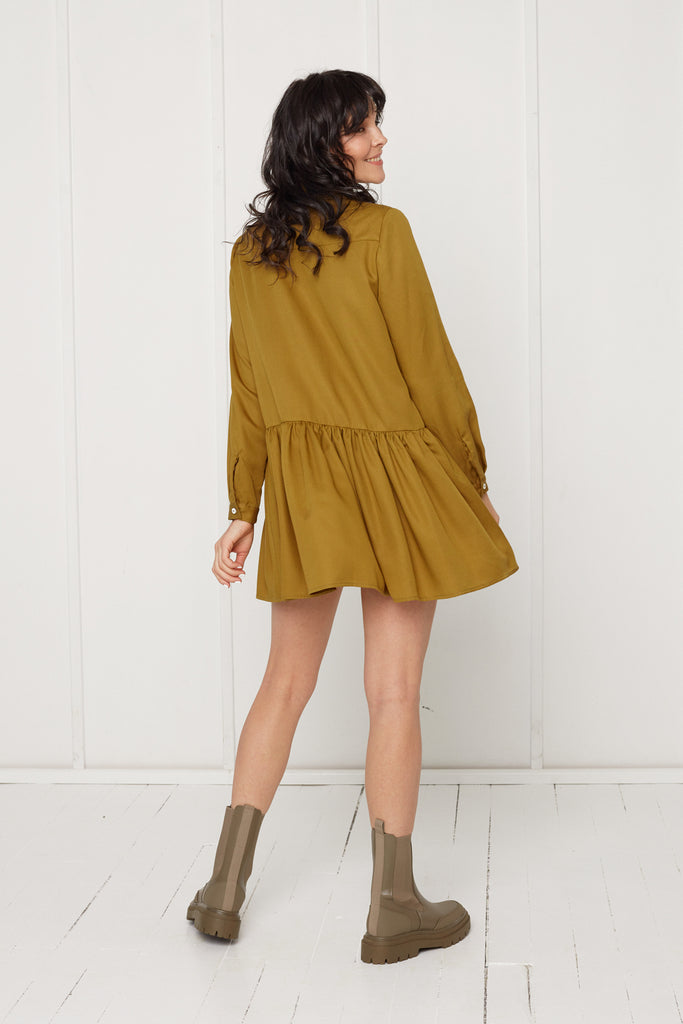 This oversized mini shirt dress made from extra soft tencel fabric is designed to last. The essential dress will make you feel comfortable and playful no matter the situation. The dress features a comfortable fit with elegant front frill, side pockets.