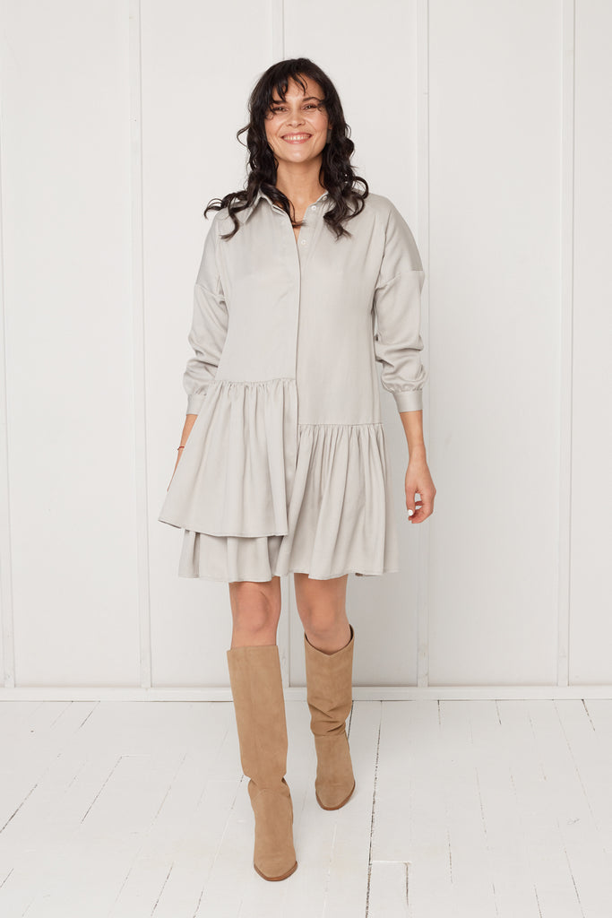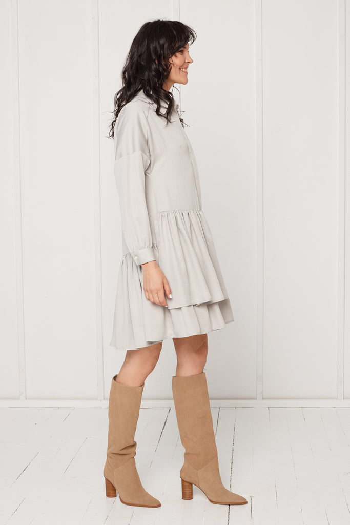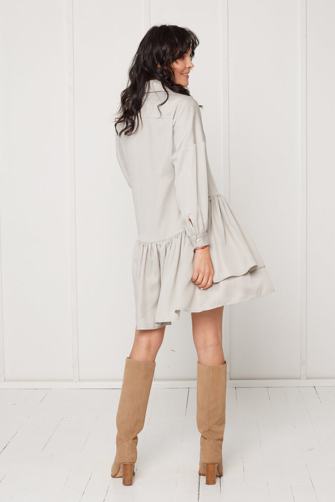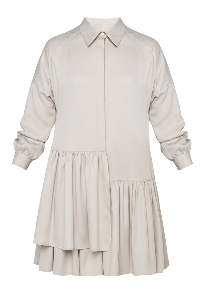 This oversized mini shirt dress made from extra soft tencel fabric is designed to last. The essential dress will make you feel comfortable and playful no matter the situation. The dress features a comfortable fit with raglan sleeves, elegant double front frill, side pockets.