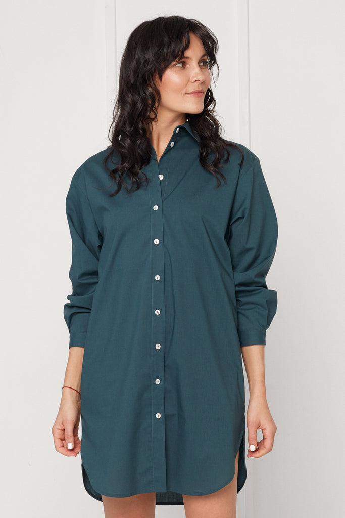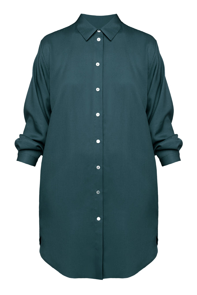 MIRA mini tencel shirt dress in teal blue